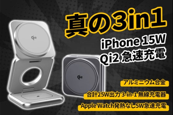 大反響の3in1充電器 P1シリーズがついにQi2規格の15W高速充電に対応!最高級にスタイリッシュでコンパクトなワイヤレス充電スタンドです。生活も、旅行も、ビ...