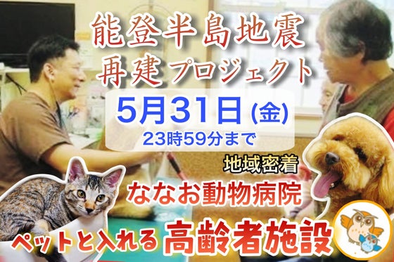 2024年1月1日に起こった「能登半島地震」で被災した観光地唯一の動物病院と日本初の動物病院併設ペットと入れる高齢者施設を再建させるプロジェクトです。
