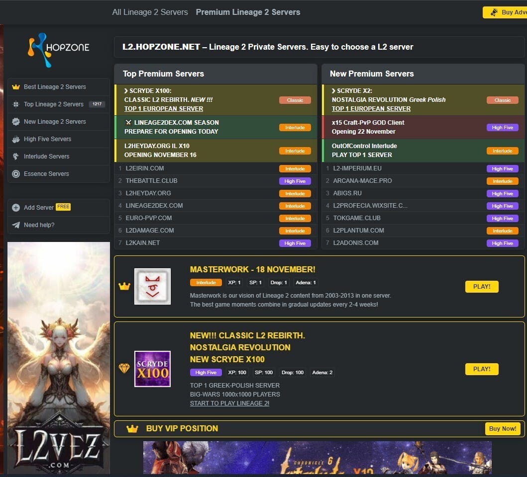 Почему стоит доверять рейтингу серверов Hopzone? Hopzone предоставляет объективный рейтинг серверов Lineage 2, основанный на голосах реальных игроков. Это делает его лучшим выбором для поиска честных и качественных серверов. Убедитесь сами, выбрав сервер для нового игрового приключения. https://l2.hopzone.net/ru/lineage2/interlude