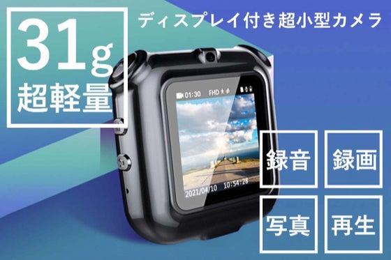 録音・録画・写真・再生機能を備えたディスプレイ付き超小型カメラ