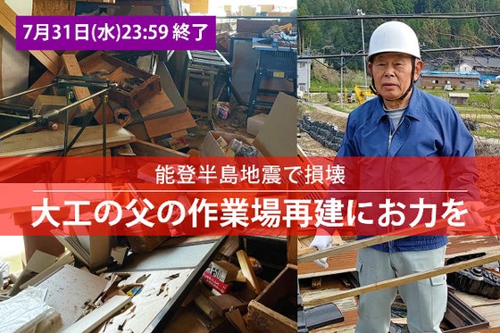 能登半島地震で、大工をしている父の作業場が全壊しました。1日も早く復興のお手伝いに参加できるよう、作業場を再建するためのご支援をお願いいたします。