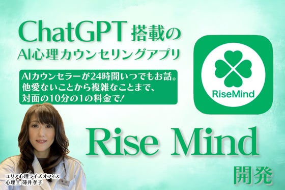 「悩みを一人で抱えない社会へ。AI心理カウンセラーアプリ『Rise Mind』の広告支援をお願いします!」Chat搭載のAIカウンセラーアプリを開発し、2025...