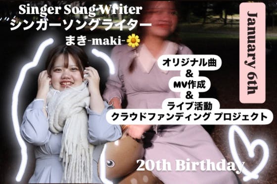 初めまして。現在19歳でシンガーソングライターを目指しておりますまきと申します。来年の1月6日に20歳になります。その記念、思い出としてオリジナル曲、MV作成、...