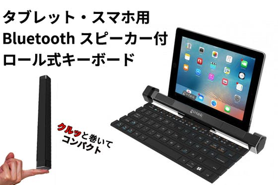 クルっとロール可能なキーボードとBluetoothスピーカーが1つになった持ち運び可能な2 in 1ガジェットです。iPad、iPhone、Android、Wi...