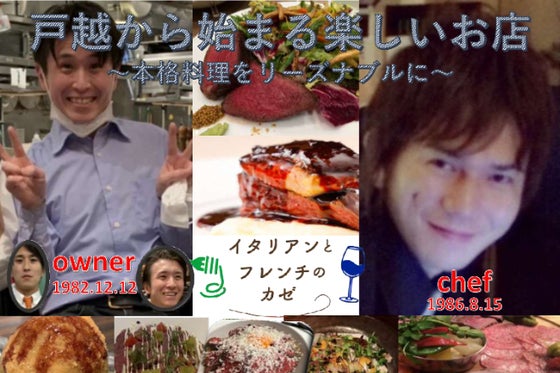 遂に始動!!戸越から飲食の風が吹く!! 【イタリアンとフレンチのカゼ】オープン! 5月後半から6月にオープンする予定です! 15年創業からやってきた全国区...