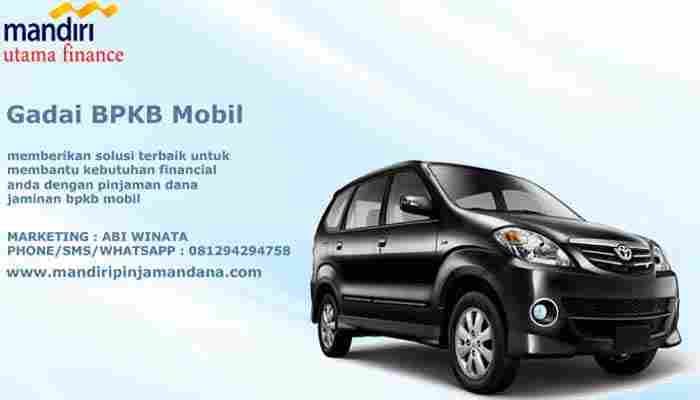 Pinjaman dana jaminan bpkb mobil proses cepat bisa langsung cair tanpa survey dengan suku bunga terendah serta bpkb mobil aman di jakarta, bogor, depok, tangerang, bekasi, bandung, surabaya, malang, medan dan seluruh wilayah indonesia. Hanya dengan gadai bpkb, Anda bisa mendapatkan pinjaman dana untuk memenuhi berbagai macam kebutuhan pribadi atau bisnis. Pengertian gadai bpkb mobil tidak harus menyerahkan kendaraan sebagai jaminan, akan tetapi hanyalah menyerahkan bpkb mobil saja. Selain itu, surat kendaraan yang dijaminkan akan tetap terjaga keamanannya. Untuk informasi selengkapnya, silahkan hubungi marketing kami berikut ini Office : Jalan alternatif cibubur perum.griya nusantara ( Cibubur City ) blok 3 & 3A kel. Nagrak kec. Gn putri bogor Telp. 021 22886560 Contact Person : Marketing : Abi Winata Telepon/Sms/Whatsapp : 081294294758