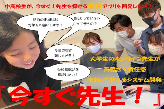 今すぐちょっと勉強を教えてほしい子供たちのためのオンライン家庭教師アプリがあったら!現役大学生と中高生の空き時間をマッチングするアプリを使って、オンラインによる...