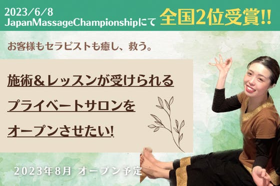 タイ古式マッサージの施術を通した癒しの場としてプライベートサロン【Vielva】をオープンしたい!仕事で疲れた身体を癒し、応援する。救えるセラピストになりたい。