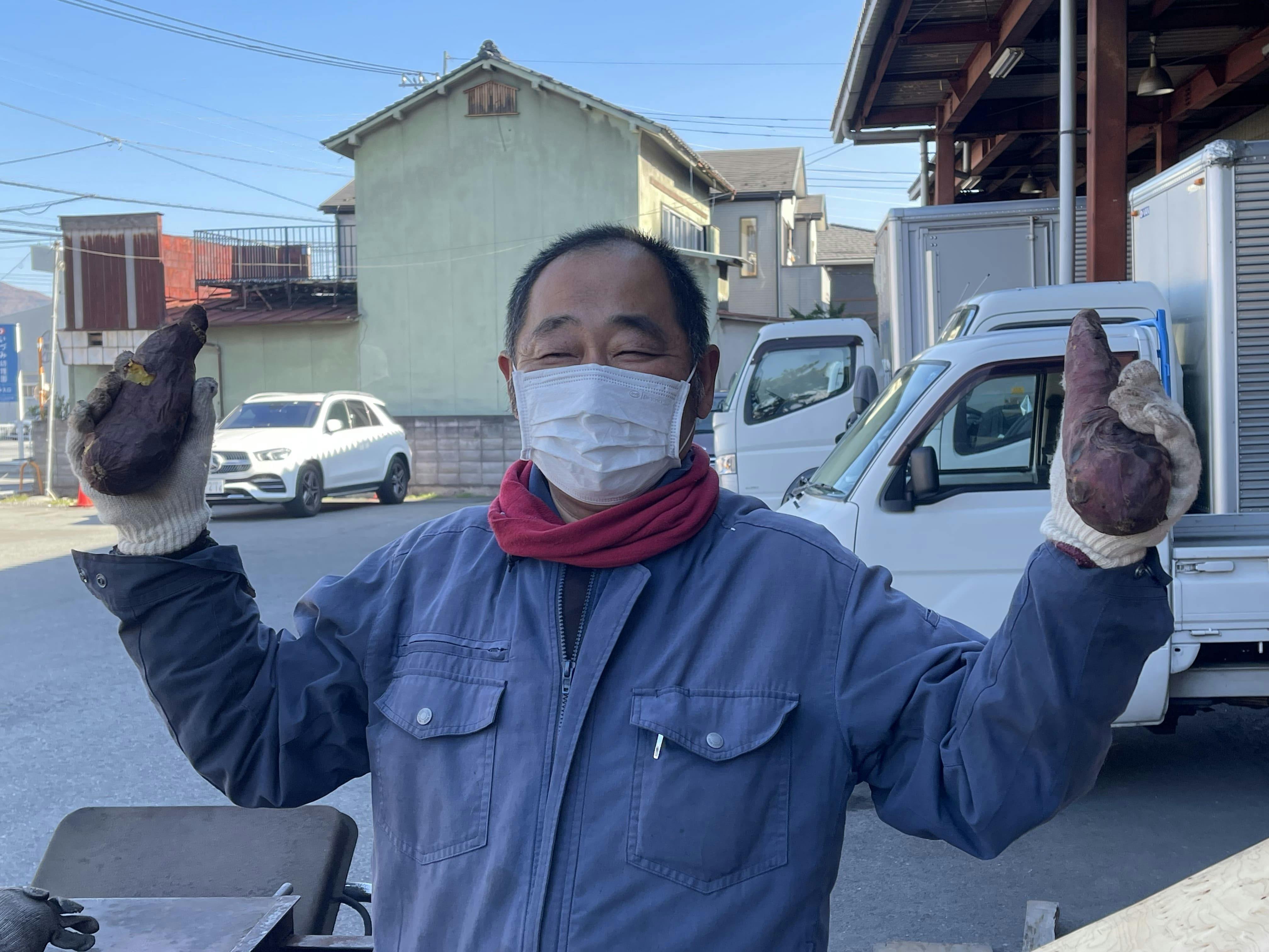 当社は、創業約70年の青果市場で、会社敷地内で約30年間、焼き芋を製造販売しております。長年の青果業で培った確かな目利きで、厳選した国産のお芋を昔ながらの石で焼いています。 さつまいも1つ1つにこだわりを持って厳選し使用しております。 厳選したさつまいもの甘味を最大限に出すため「焼き」は 昔ながらの石を使い、毎朝4時から3時間以上じっくりと焼き上げ。 火調整は薪で行っております。 この機会にぜひ 当店のこだわりの焼き芋をご賞味ください。