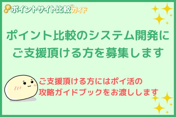 複数のポイントサイトを横断比較するサイトを運営しております。システム開発のために必要な資金をご支援頂ける方を募集します。よろしくお願い致します。