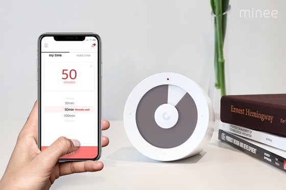 最も革新的なビジュアルタイマー minee - 流れる時間をひと目で見せて集中力と能率をアップさせます。分単位で時間設定が可能で専用アプリで便利に利用可能です。...