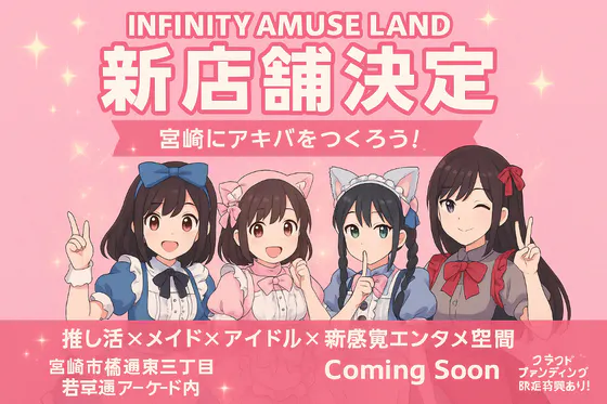 宮崎市若草通りに11月プレオープン! 「インフィニティアミューズランド」が推し活×メイド×アイドル×アミューズメントの世界を融合。共通ファンクラブを通じて宮崎か...