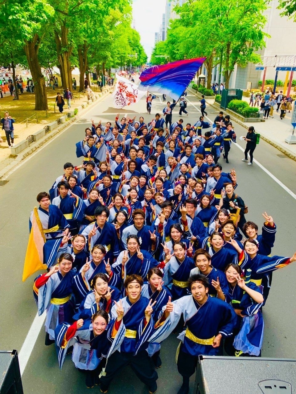 YOSAKOIソーランが始まった時から父の会社エイト株式会社でよさこい衣装の制作をしてきました。 1番多い時は全国のチーム、20チーム以上を作りました。 中国に作った工場で生産し、衣装代が負担になりがちな学生さんのチームを沢山応援してきました。 時が流れ、時代が変わり、中国での生産をやめ、父が他界し、長女である私が引き継いで作ることになり、エイト株式会社を廃業した翌年、まさかのコロナウィルス。 一度も中止になったことがなかったYOSAKOIソーランが中止、作りかけの衣装だけが手元に。 誰にも先がわからない、不安の中で、過去のよさこい衣装に使った生地で縁起のいい「YOSAKOIマスク」を作って、マスク不足で困ってる皆さんにマスクと元気をお届けし、コロナの終息を願っていました。 そして長引くコロナ禍の中、手がけた衣装を完成させ、来年開催されるはずの「YOSAKOIソーラン」でみんなで踊る!そう酪農学園大学の衣装班と約束して、年明けから製作再開することとなりました。