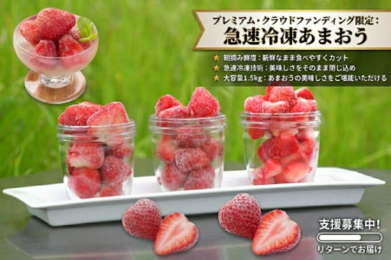 朝摘みしたあまおうをその日のうちに急速冷凍しました。 新鮮なままの美味しいイチゴをご堪能いただけます。美味しさと鮮度をたくさん方々のご支援をいただければ幸いです。