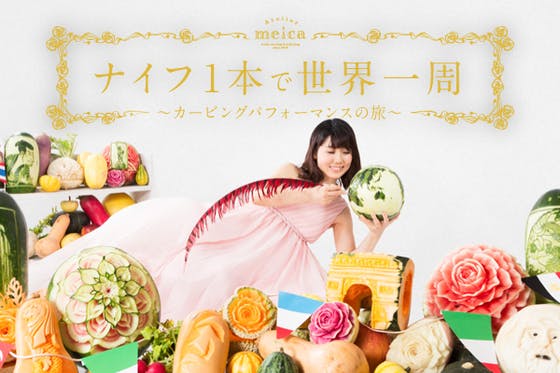 世界を虜にする 10分のおもてなしパフォーマンス カービングパフォーマーのmeicaです。 野菜彫刻を使ったパフォーマンスを片手に 世界一周に出発します!! 誰も見た事のないそのパフォーマンスは 沢山の反響を頂いています♪ あなたの好きな音楽にのせて、 あなたの好きなデザインを。 世界の絶景の中 現地の野菜や果物でパフォーマンス 笑顔の花をつなぐ旅をしたい! 応援よろしくお願い致します!