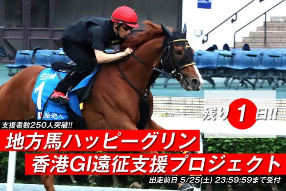 地方・ホッカイドウ競馬在籍のハッピーグリンの、香港GI・チャンピオンズ&チャターC 芝2400m戦への自費遠征の支援を募るプロジェクトです。コスモバルク以来の、...