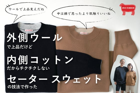 スウェットと言えばカジュアル、ウールセーターと言えば上質だけどチクチクが気になる、残糸のアップサイクルブランド【RYETENDER】がお届けする、上品かつチクチ...