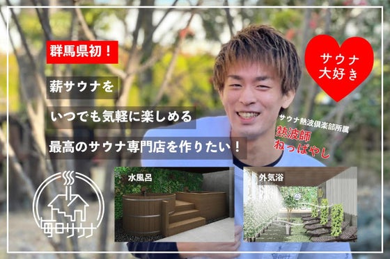 今までにない毎日、気軽に、ととのえるサウナ施設を作りたい…そんな想いから、群馬県で薪サウナを備えた男性専用の【サウナ専門店】をオープンさせます。水風呂は2種、檜...