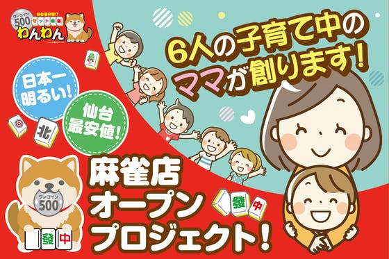 6人の子を育てる母ちゃんの 日本一明るいみんな笑顔溢れる ワンコイン(500円)で遊べるセット専門麻雀店のオープンプロジェクトです!