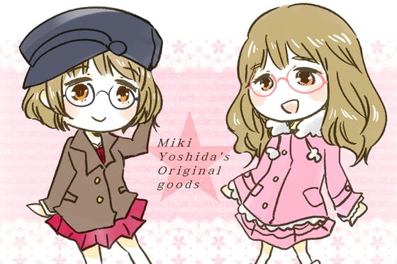 私、吉田ミキをイメージして作ったキャラクターを使ったオリジナルグッズを制作したい。また、今回は著作権も含めてクリアしたものを利用しております。