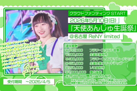 2026年5月10日に名古屋NAGOYA ReNY limitedで開催されるアイドルグループ『ぜろから☆すと→と』メンバーの天使あんじゅ生誕祭の開催にあたって...