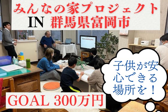 今現在群馬県富岡市では子供の居場所が少ない。そこで私たちみんなのおうえん団が設置しているみんなの家を子供達にたくさん使ってもらい、教育格差を是正し、子どもたちの...
