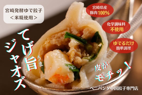 宮崎県産食材×中国式ゆで餃子の美味しさを手軽に実感してほしいとの想いで、県産豚肉100%・発酵調味料(米糀)を使用し、化学調味料不使用で作った安心・安全な中国餃...