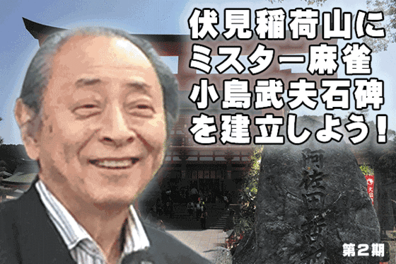 小島武夫プロの碑を京都の伏見にある阿佐田哲也碑のそばに建立することを目的に2019年4月より活動しています。多くの方々にアナウンスしご協力をいただく期間として2...
