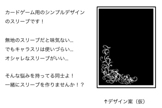 カードゲーム用のシンプルでオシャレなスリーブが欲しい!!でも探してもなかなか良いデザインの物が無い…なら作ればいいじゃない!!そんな思いで始めました!!
