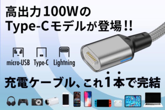 端子を統一するスマートケーブルから待望のType-Cモデルが登場!最大100Wの高出力が可能になり、PC等の充電にも文字通りこれ一本で充電が可能に。(※Type...