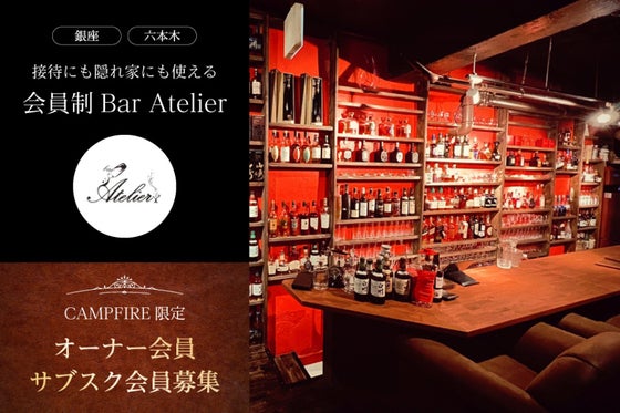 一見さんお断りの完全会員制Bar AtelierがCAMPFIRE限定で会員を募集いたします。銀座 ・六本木という大人の街で、限られた人だけしか入れない特別な空...