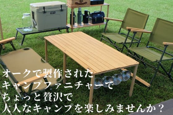 通称『森の王』オークで製作された素材からデザイン・仕上げに拘って製作したキャンプファニチャーでちょっと贅沢で大人なキャンプを楽しんでいただきたい。