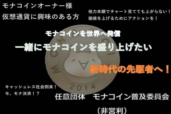 日本で最初の仮想通貨であるモナコインを日本のみならず、世界の人に知ってもらう活動を行います。HP、動画、Youtuberの起用等、流行りに沿って宣伝広告していきます。