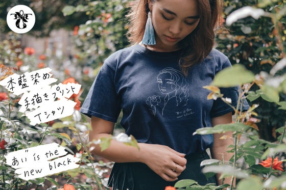 ミレニアル世代×日本が世界に誇る伝統技術"本藍染め"ファッション!受注生産で価格を抑えた最高級の本藍染め手描きプリントレディースTシャツ ”あい is the ...