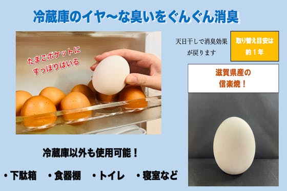消臭剤に見えない。かわいいたまごの形直射日光に当てることで、消臭効果が復活します。信楽の土を使用した焼物