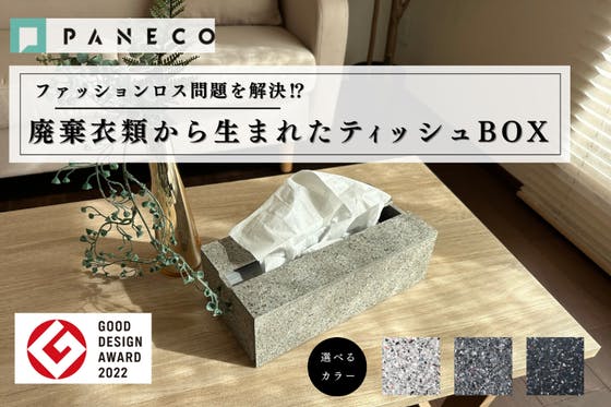 廃棄衣料繊維を原料としたサステナブルなボード「PANECO」のティッシュBOX