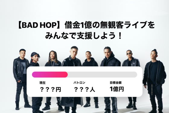 「1億円以上の負債を背負ってでもファンのために開催する」 BAD HOPメンバーの漢気溢れるチャレンジを、スタッフ一同クラウドファンディングという形で支援するこ...