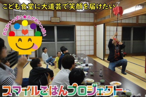 全国のこども食堂の子供たちを、大道芸でもっと笑顔にしたい!! こども食堂のおいしいごはんでお腹いっぱい、そして大道芸で笑顔もいっぱい。 こども食堂を大道芸で...