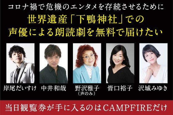 野沢雅子をはじめとしたアニメ・洋画の吹替でお馴染みの有名声優陣が、コロナ禍で存続が危ぶまれるエンタメを盛り上げる為、YouTubeによるオリジナル朗読劇を上演。...