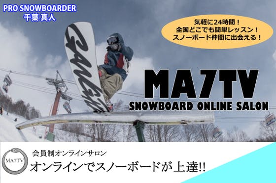 プロスノーボーダー MA7TV 千葉 真人によるオンラインサロン。スノーボードの格好良さ、楽しさ、上手くなるコツなどを伝えるべく、オンラインでのレッスンやサロン...