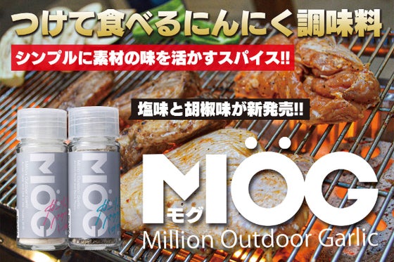 にんにくパウダー調味料Outdoor Garlic(アウトドアガーリック)に「塩味」と「胡椒味」が登場! アウトドア料理の素材を活かすスパイス。