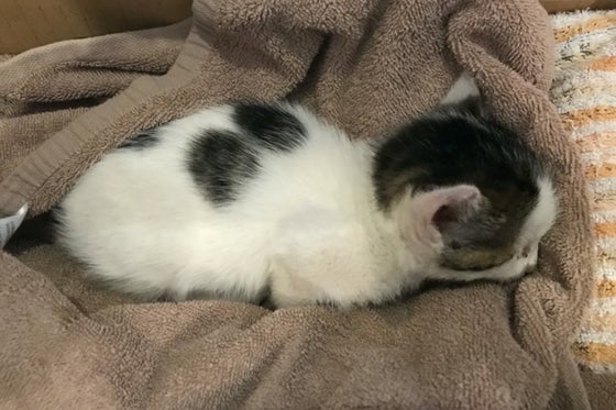 頭部に大怪我をした仔猫を保護しました。工事現場で頭部が瓦礫の下敷きになった仔猫を見つけました。おそらく生後3週前後、頭部が大きく腫れて弱っていましたが「ピーッピ...