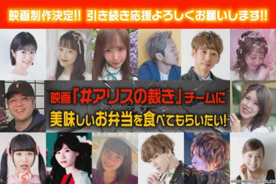 映画『#アリスの裁き』の制作に関わる全ての人に美味しいお弁当を食べてもらうためのクラウドファンディングです!この想いにご賛同いただける方、ご支援よろしくお願いい...