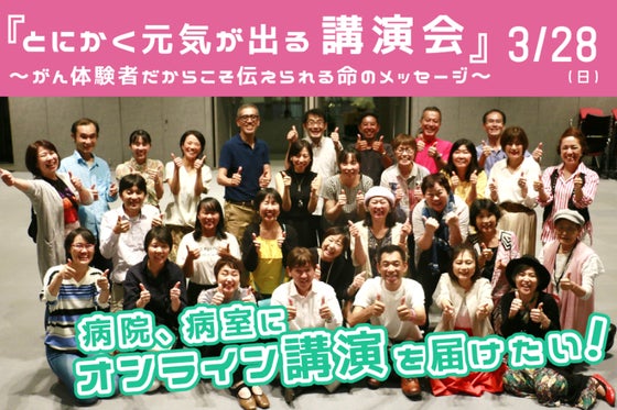 「病院、病室に希望つなぐ講演を届けたい!」という趣旨で、3月28日(日)無料オンラインイベント『とにかく元気が出る講演会 ~がん体験者だからこそ伝えられる命のメ...