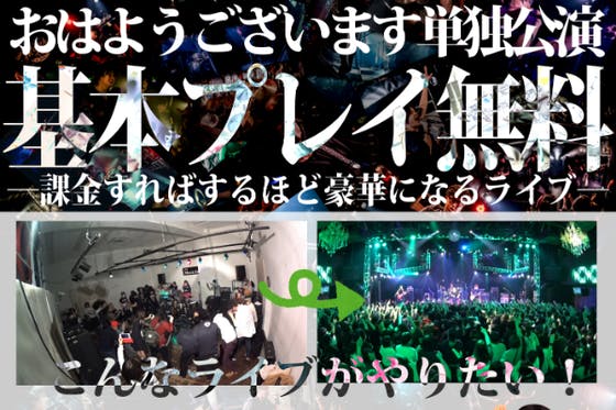 入場料が全てライブ演出に還元されるイベント「基本プレイ無料」を開催したい!そして、この日しか撮れない【ヤバイライブ映像】を使って新曲のミュージックビデオを作り、...