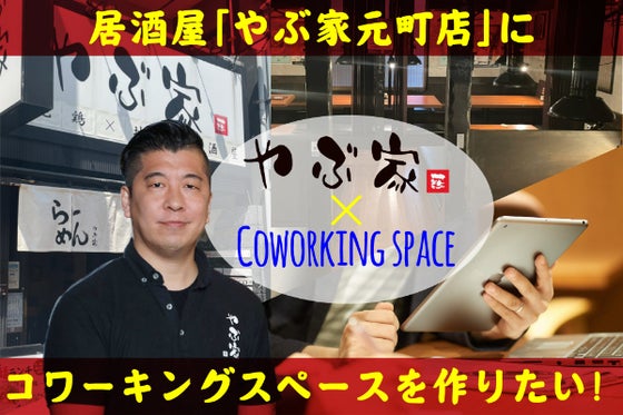 JR元町歩いてすぐの居酒屋「やぶ家」の「お座敷」を「コワーキングスペース」として活用したい。新しい「居酒屋モデルケース」を全国に広めていくチャレンジです!