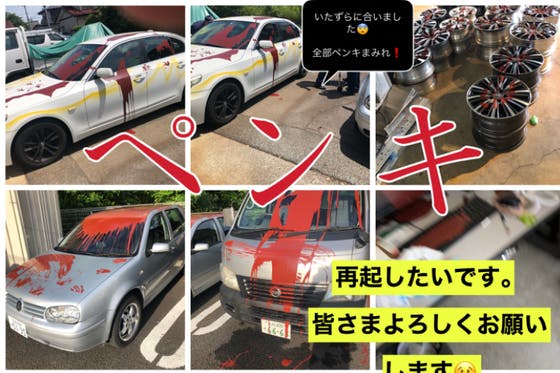 全商品ペンキをかけられるという酷いいたずらに合い、商品全て破棄する事態となり再起する為の支援を求めています。