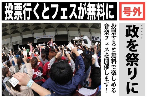 選挙で投票をした際に取得できる"投票済証明書”や、投票所の前で撮った写真など投票に行ったことを示せると無料で楽しめる音楽フェスを開催するための資金を集めています...
