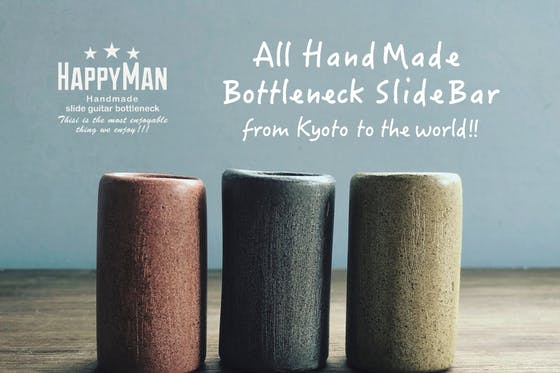 全てハンドメイドで作る陶器製スライドギター用ボトルネックバー「HappyMan」をもっと多くのギタリストやブルースマンに使ってほしい!まずは地元京都から企画展示...
