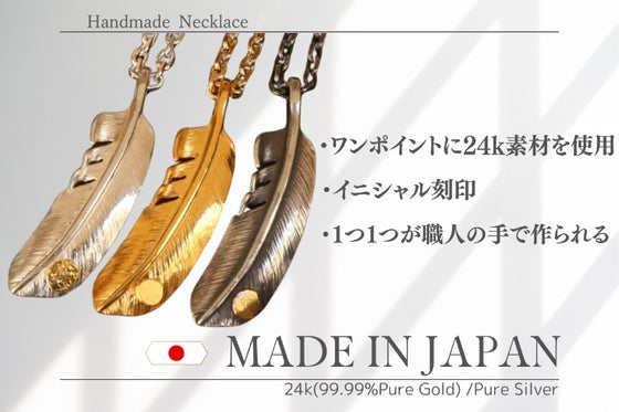 素材の魅力をそのまま生かしたMADE IN JAPANのネックレス自由と飛躍の象徴であるフェザーをハンドメイドで表現全てのフェザーにワンポイントで99.99%純...
